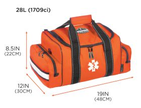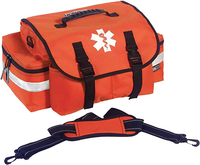 The Arsenal 5215 Large First Responder Bag is built to carry basic life support supplies and oversized specialized medical devices in on-the-go situations where first aid is needed. Built tough to withstand harsh conditions, the exterior is made with 600D polyester for long-lasting use while transporting heavy supplies. This medic trauma duffel bag features a large storage space with collapsible internal dividers that can be used for customized organization or removed to fit larger-sized medical devices. 2 zippered side pockets and 19 webbed storage loops offer additional storage for quick access to first aid supplies. A padded shoulder strap and top grab handle make for easy transport in a rapid response situation. Reflective accents enhance visibility in low-light conditions. This EMS bag is an ideal medical supply storage bag for first responders on a jobsite, volunteer EMTs or firefighters, event or school staff, or for activities like hiking, camping, travel, or sports. Keep this mobile EMS bag in your car, home, or office for on-the-go assistance in emergency situations.