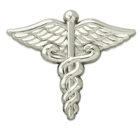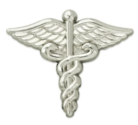 American-made Collar Brass: Medical Caduceus. Manufactured to military specification from solid brass with pins that will not break off. Lacquered to prevent tarnishing – no polishing required. Sold by the pair.