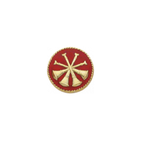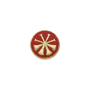 American-made Fire Department Collar Brass: 15/16" RED/GOLD four crossed bugles. Manufactured to military specification from solid brass with pins that will not break off. Lacquered to prevent tarnishing.