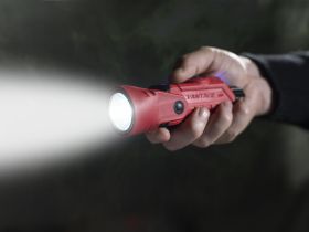 The versatile STREAMLIGHT© VANTAGE® 180X for firefighters is three lights in one. It's a helmet-mounted light for hands-free use, a right-angle light that can attach to your turnout gear, and a handheld flashlight. So wear it, hold it, clip it, or even hang it! This light is available as a Multi-Fuel innovation. The light will accept one (1) Streamlight SL-B26® protected Li-Ion USB rechargeable battery pack with a micro USB port or two (2) CR123A lithium batteries.