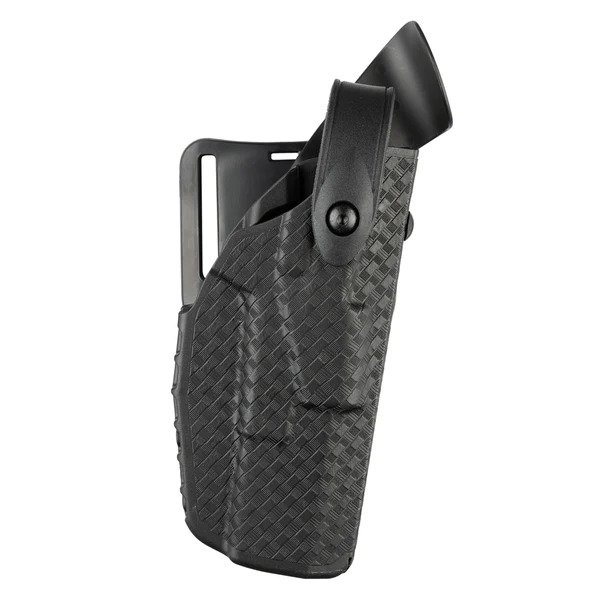 This holster features the Self Locking System (SLS) rotating hood with the Universal Belt Loop (UBL) that mounts to a 2.25 in. (58mm) duty belt. The SLS allows for a smoother single-motion draw and greater protection against attempted takeaways. This model is constructed of the innovative SafariSeven™ material, a high-performance nylon blend. SafariSeven™ is highly durable and practically impervious to the elements.