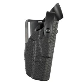 This holster features the Self Locking System (SLS) rotating hood with the Universal Belt Loop (UBL) that mounts to a  2.25 in. (58mm) duty belt. The SLS allows for a smoother single-motion draw and greater protection against attempted takeaways. This model is constructed of the innovative SafariSeven™ material, a high-performance nylon blend. SafariSeven™ is highly durable and practically impervious to the elements.
