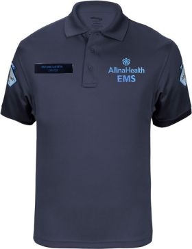 Left chest: Allina Health EMS logo embroidered 1-color Blue 1029