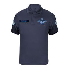 Left chest: Allina Health EMS logo embroidered 1-color Blue 1029