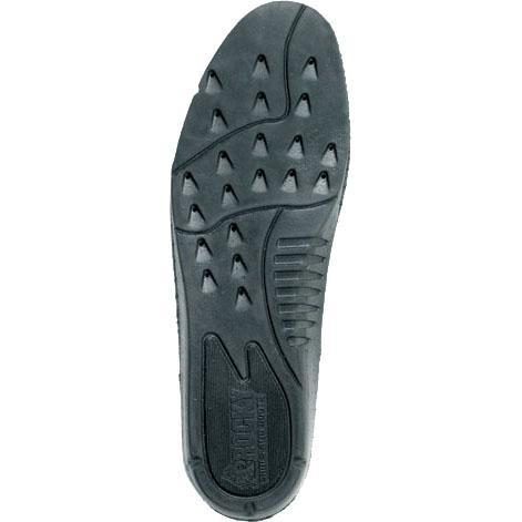 The Rocky® Air-Port™ Footbed is a high-performance, cushioning, and comfortable footbed.  Arch support comes from the arch lift, which conforms to a man's foot and rebounds to its prior shape after each use.  Not every footbed gives you metatarsal ridge support, but the Air-Port does! It is extremely comfortable and enhances your shoe's insole performance.  At the other end of your foot, the heel cup impression provides support and comfort.  There's also 40-density polyurethane to absorb shock. Like the arch lift, it, too, rebounds to its original shape after each use.  For an extra touch of comfort, this insole is covered with soft, brushed fabric.  This footbed does so much to support and comfort; you can stand and work all day! So if you need men's boot inserts, get the Air-Port by Rocky.
