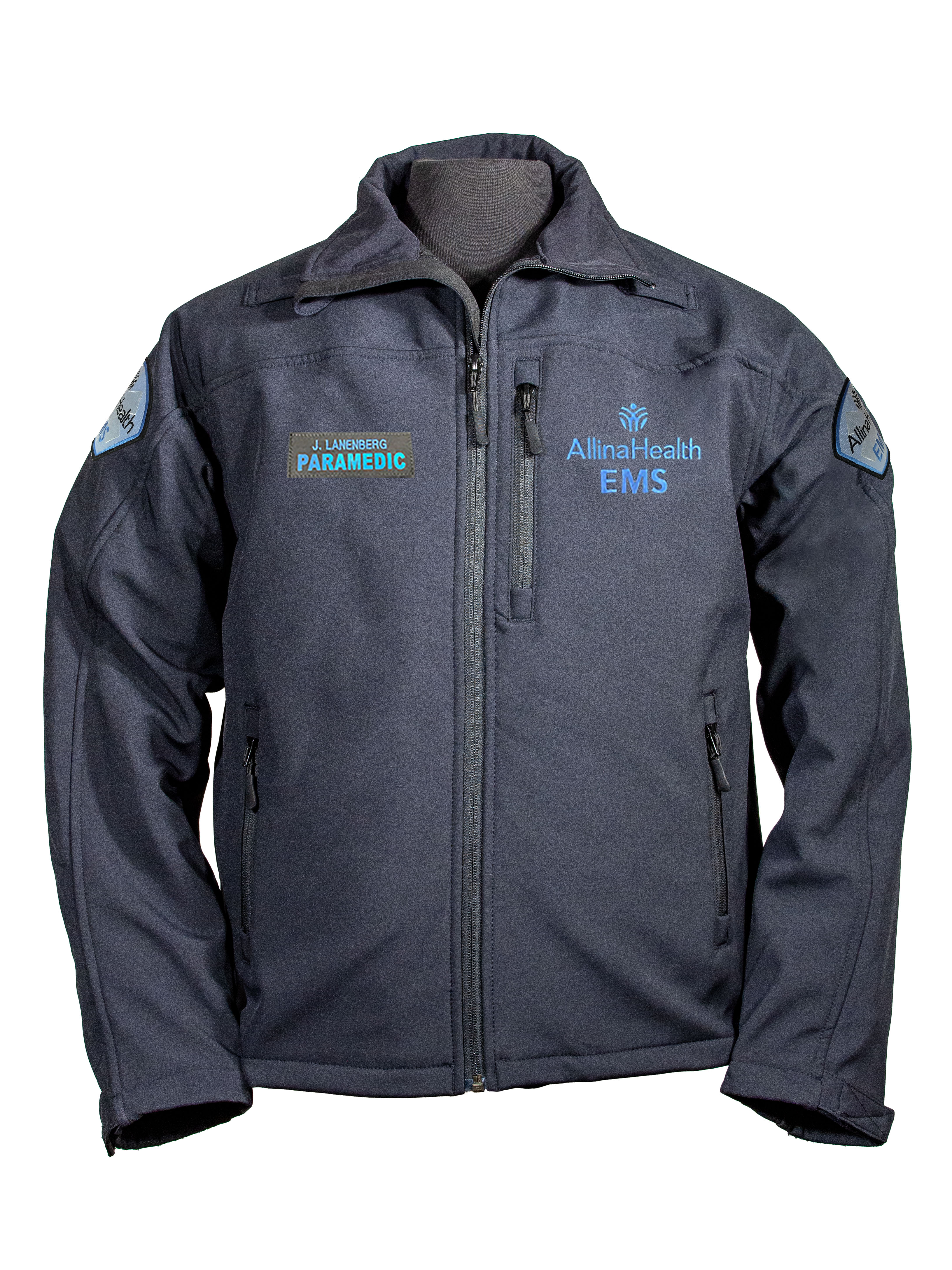 Left chest: Allina Health EMS logo embroidered 1-color blue 1029