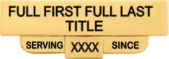 SMITH & WARREN - GOLD - Clutch Back Nametag w/Serving Since Tag