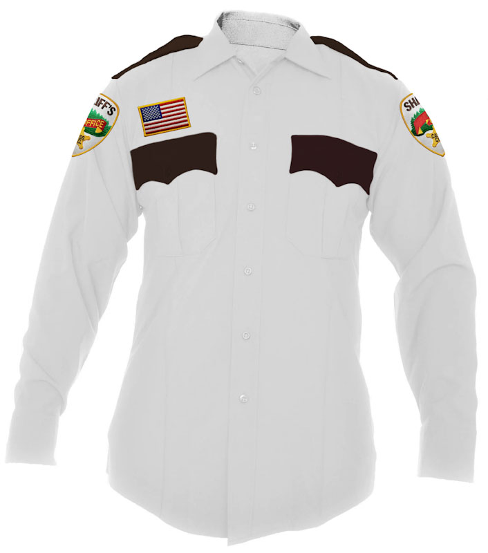 CASS COUNTY SHERIFF'S OFFICE CHIEF DEPUTY CLASS A SHIRT SPEC: EB3500W + TRIM-BROWN-SHIRTS + 1 FLAG + 3-PSS