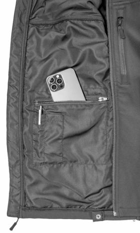 - Internal zippered chest cell phone pocket.