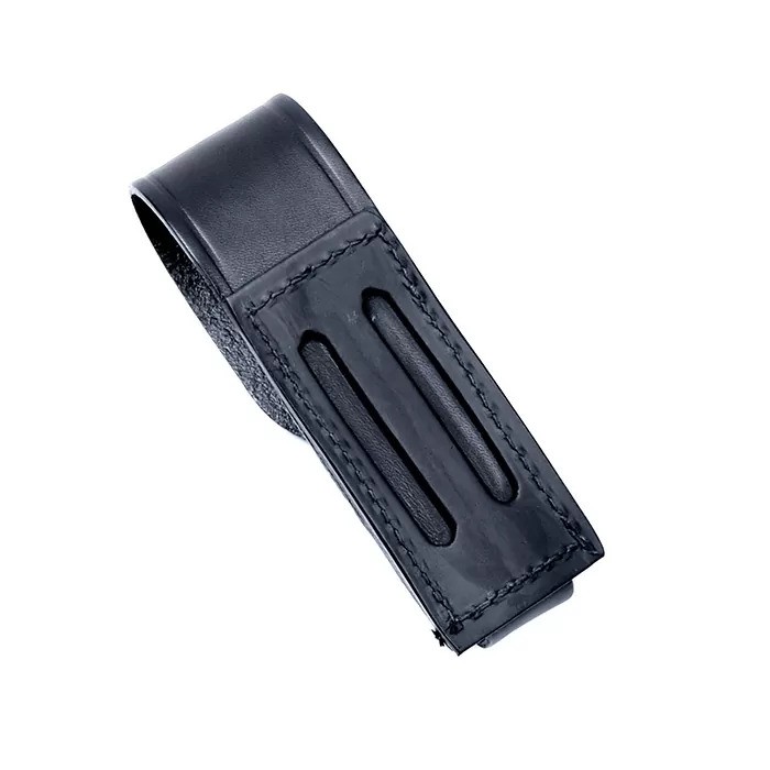 Boston Leather plain holster 5573LD1 is a full holster with top flap and black snap closure is made in the USA of high-quality leather. This leather flashlight holster fits the Streamlight Strion LED (not the HP model).