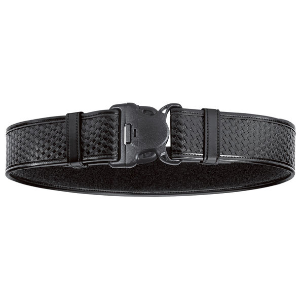 The Model 7950 Duty Belt features 4-part laminate construction for firmness and holster support. It features a Duraskin™ exterior with loop lining for use with the Bianchi® 7205 Liner Belt. 2.25" (58mm) belt width. It features the Tri-Release™ shatter-resistant polymer buckle. Its 3-point release provides extra security from inadvertent release. Complements AccuMold® Elite™ accessories.