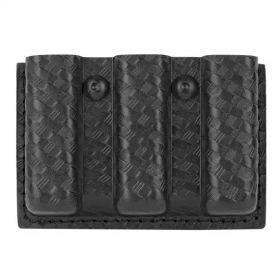 The Model 775 Slimline Open Triple Mag STX Pouch from Safariland, holds contents face-out to save valuable space on duty belts, fitting three magazines in the space normally taken up by a dual magazine pouch. The 775 is crafted from durable and rigid SafariLaminate® STX and comes in a choice of five different finishes well-suited for uniform wear. Retention screws between the pouches allow for custom set levels of tension according to user preference. Its open-top design provides rapid access to contents, saving valuable time when reloading. The pouch features horizontal and vertical belt slots for versatile mounting options and fits a 2.25-inch wide-duty belt.
