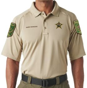 Right chest: Line 1 = PARK RANGER embroidered 10mm in Brown 1129
