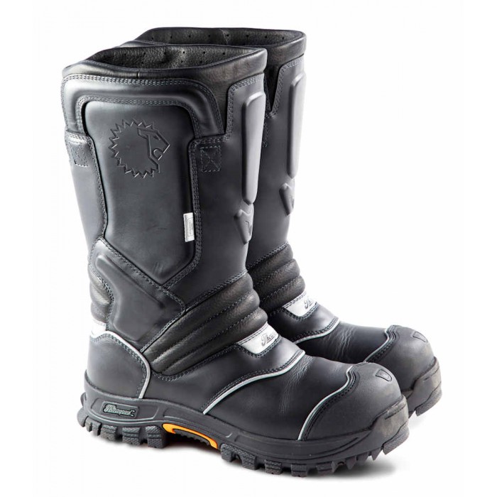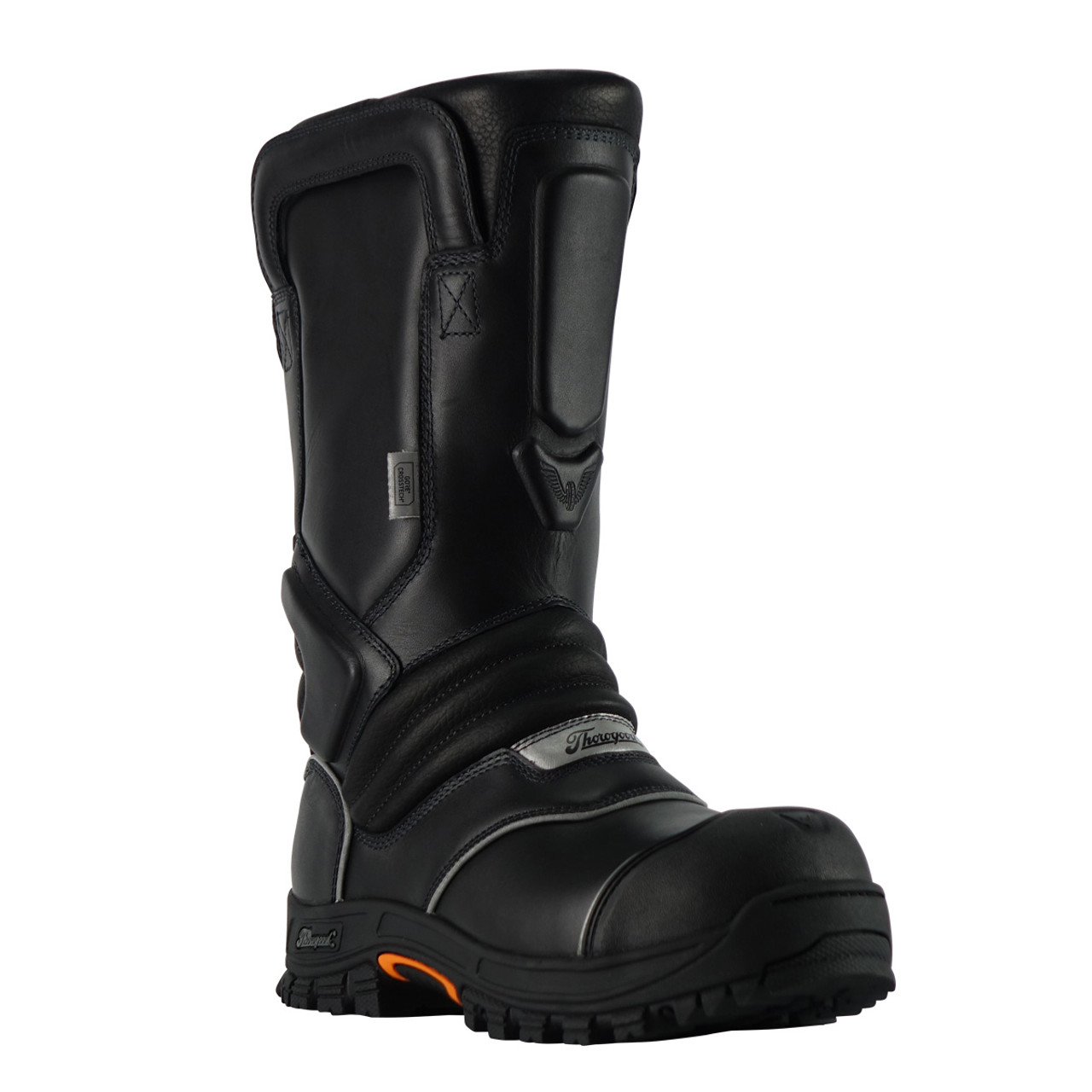 Thorogood's QR14 bunker boots are built for comfort, durability, and safety. The flex gussets allow the boot to move with you. 3M™ Scotchlite™ Hi-Vis piping in these waterproof, flame- and cut-resisting leather bunker boots creates a high-visibility look when exposed to direct light. The aggressive, slip-resisting outsole with 90-degree heel and ladder grips provide exceptional traction on any surface. GORE® CROSSTECH® triple layer moisture barrier is the toughest in the industry, delivering rugged, long-lasting protection that exceeds the requirements of the NFPA 1971 standard. The composite safety toe, Lenzi L-Protection® insole, and steel triple-rib ladder shank protect your foot from impact, puncture, and the strain of working on ladders. Extra padding in the shin and ankle protects you from ladder rungs and other impacts. Slip-resistant in all conditions and heat-resistant when the going gets hot, these all-weather NFPA boots don't quit until you do. GORE® CROSSTECH® triple-layer moisture barrier protects against blood-borne pathogens Waterproof, flame- and cut-resisting leather upper with abrasion-resisting rubber toe Steel Triple-rib Ladder Shank with riveted load spreader provides lateral stability Proprietary Traction Flex outsole Cement Construction NFPA 1971 Certified.