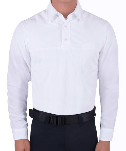 Blauer's ArmorSkin® Long-Sleeve Undervest Shirt is a fast-wicking dry knit shirt connected to a uniform shirt at the shoulders and sleeves. The wicking material extends under the arms of the shirt for added comfort and breathability. It is antimicrobial treated to inhibit the growth of odor-producing bacteria. The Base Shirt concept is similar to the military issued under vest shirts, which are so popular with the troops. While a conventional duty shirt or Supershirt can be worn under the vest, the ArmorSkin Base Shirt is a lot more comfortable and professional looking. In the station, without the vest on, the look is still professional, and identification, in the form of shoulder patches, is still visible. The base knit fabric is specially engineered to prevent pilling and picking from abrasion of the outer vest for a neat appearance when the vest is not worn on top of it. Even so, it is best to avoid contacting the knit directly with hook and loop straps from the soft body armor vest when possible. If cared for properly, it should last as long or longer than regular uniform shirts.