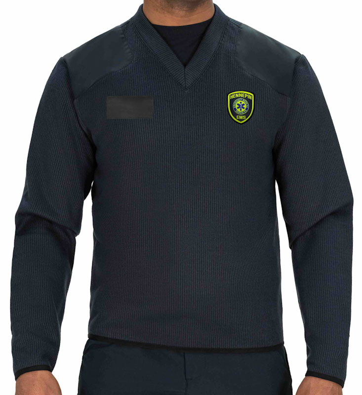 Left chest = Small Hennepin EMS patch, hi-viz yellow/silver color scheme