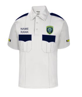 Shirt Color: White with Navy epaulets & pocket flaps