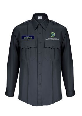 Left chest bottom: Line 1 = EMS Emergency & Line 2 = Critical Care Education embroidered silver 1811