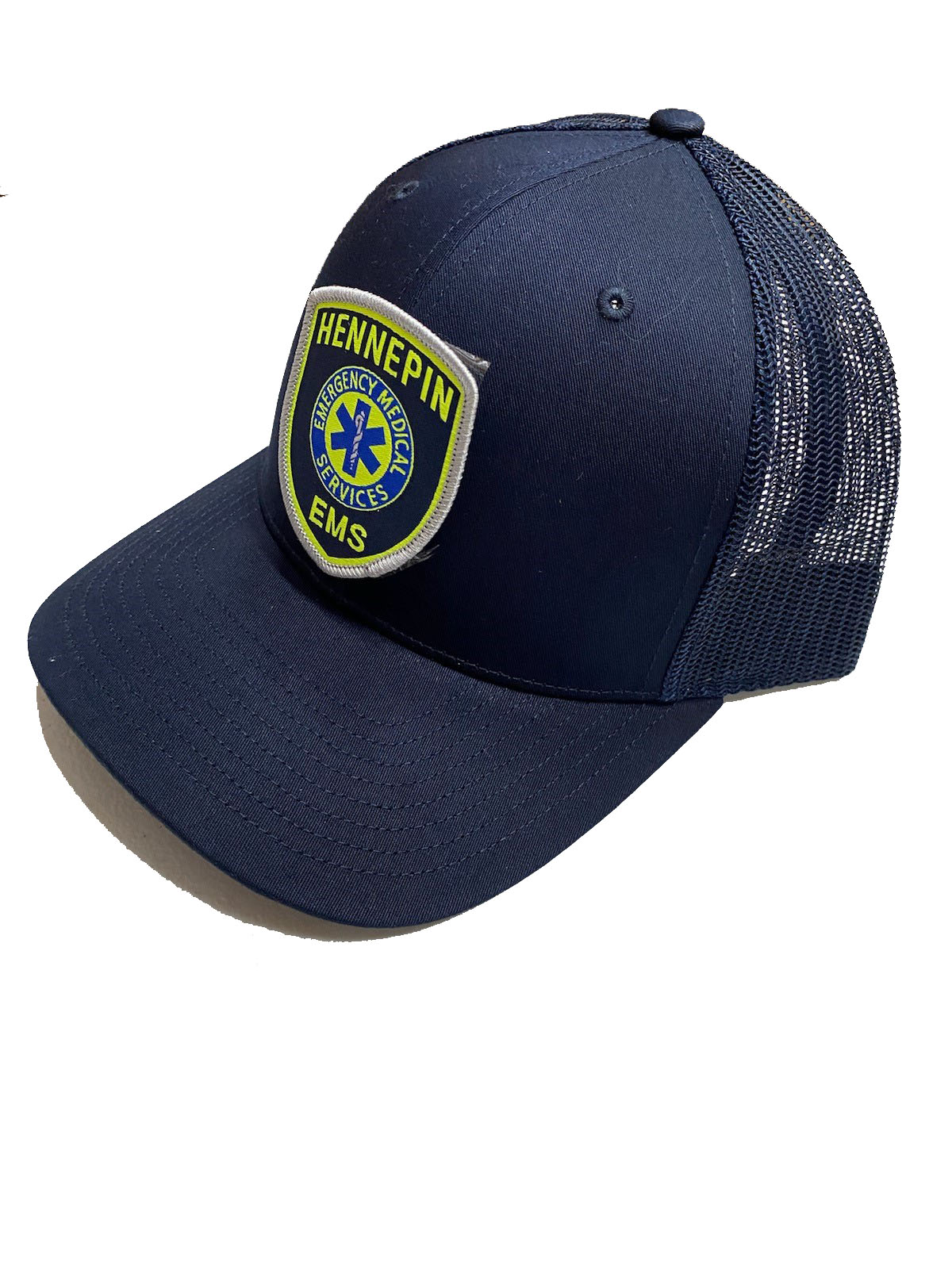 Front:2 5/8” high Hennepin EMS cap patch, hi-viz yellow/silver color scheme