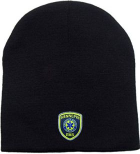 Front: 2 3/8” high Hennepin EMS cap patch, hiviz yellow/silver color scheme