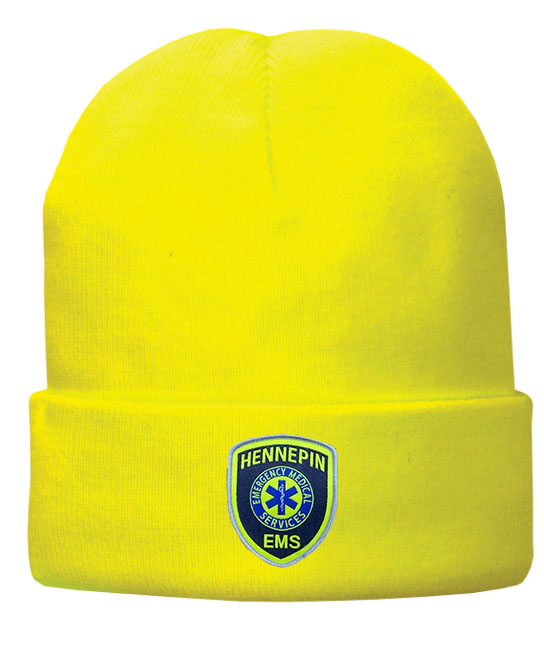 Front: Small Hennepin EMS patch, hiviz yellow/silver color scheme