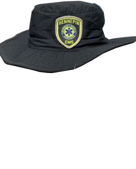 Front: 2 3/8” high Hennepin EMS cap patch, hi-viz yellow/silver color scheme