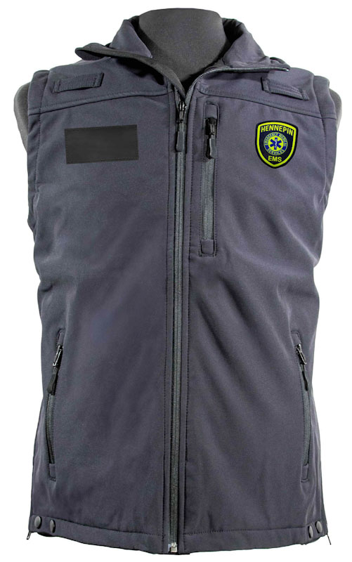 Left chest: Small Hennepin EMS patch, hi-viz yellow/silver color scheme