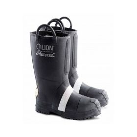 Enjoy superior protection and grip while fighting fires in these flame- and heat-resisting rubber light-insulated structural bunker boots with lug soles. The stainless steel, puncture-resisting bottom plate provides a barrier between your feet and whatever you have to walk over to contain the fire. Experience added safety in the form of an oversized steel toe. And we haven't forgotten about your comfort, either. The 3.5mm polyester needled felt liner with heel reinforcement cradles your foot while your body fights the flames. Work on ladders without discomfort thanks to cushioned shin guards. Vulcanized construction guarantees a durable, shock-absorbing fit that won't melt or degrade in extreme heat or cold. Removable superknit-covered polyurethane insole absorbs shocks so you can stand against the flames in these NFPA boots for as long as it takes to contain the blaze.