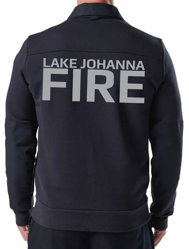 Left chest: Lake Johanna Fire logo embroidered 71mm wide