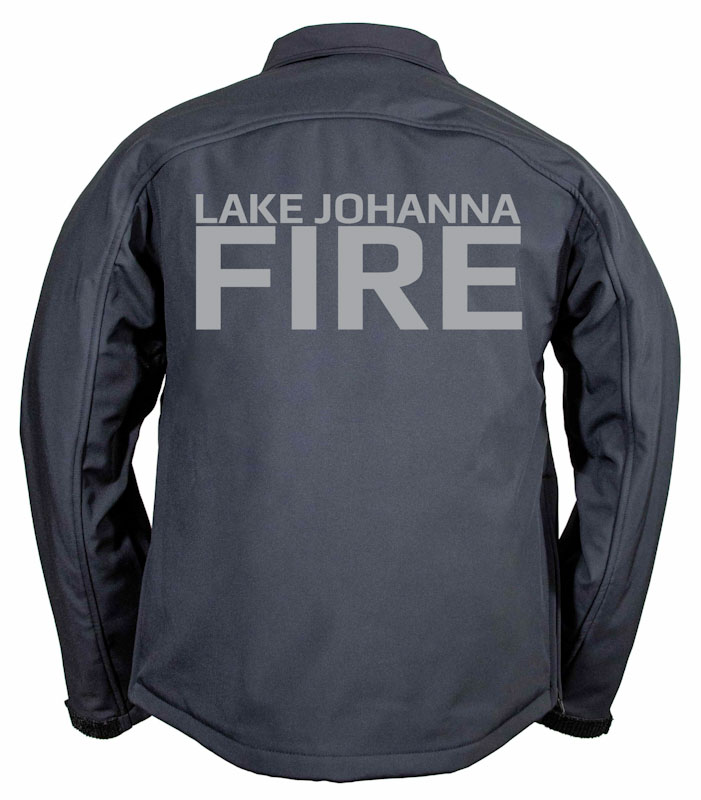 Left chest: Lake Johanna Fire logo embroidered 71mm wide