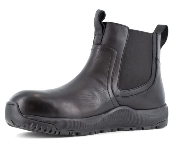 The Volcom Men's Black Street Shield Slip-On Boot VM30706 features an XTR Composite Toe, Slip Resistance, and Easy on/off with a front and back pull tab.