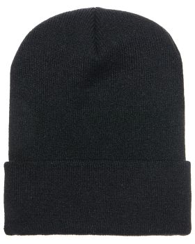 YUPOONG - BLACK-12" Knit Fold-Over Non-Fleece Winter Hat