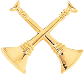American-made Fire Department Collar Brass: GOLD rank crossed bugles. Manufactured to military specification from solid brass with pins that will not break off. Lacquered to prevent tarnishing.