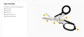 The Leatherman Raptor shears feature the necessary tools for uniformed response professionals to safely and quickly go to work in an emergency situation. Developed with the input of special operations medics, EMTs, and fire professionals familiar with standard shears, the Raptor shears were crafted with just the right balance of multipurpose features for an emergency response without an overkill of tools to complicate sometimes life-threatening situations. When it's a question of survival, the Raptor answers loud and clear. Holster included. They are commonly used as emergency response shears, industrial shears, fabric shears, kitchen shears, and garden shears.