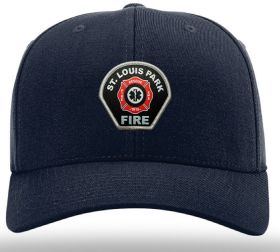 Front: small St. Louis Park Fire patch sewn to front crown